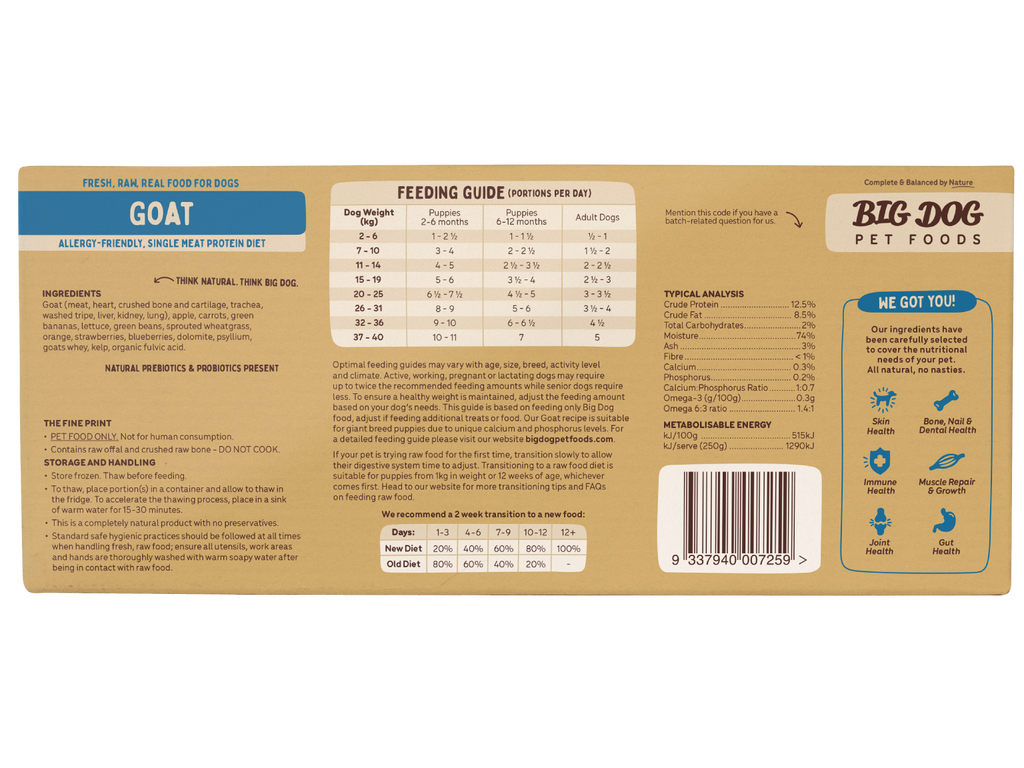 Big Dog Barf Goat Raw Dog Food Frozen 3kg