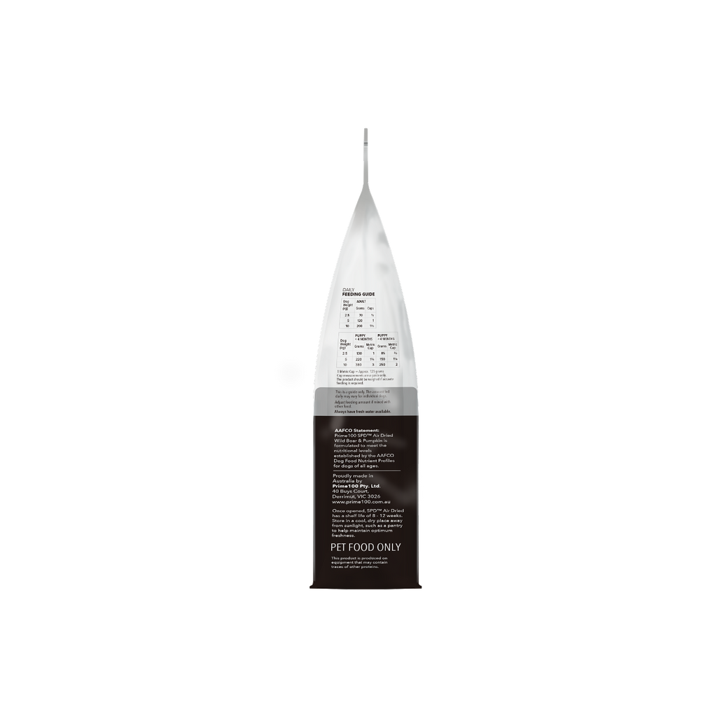 AAFCO Statement: SPD™ Air Dried Wild Boar & Pumpkin is formulated to meet the nutritional levels established by AAFCO dog food nutrient profiles for dogs of all ages.